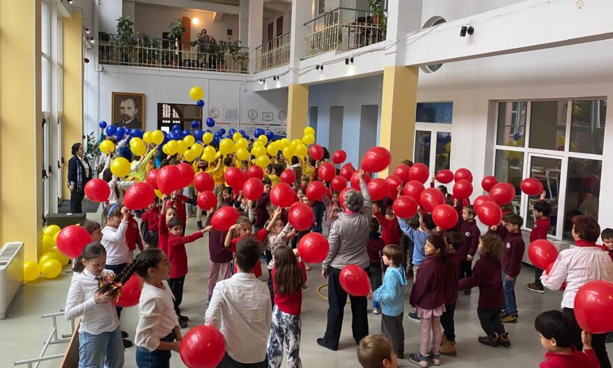 Aula Colegiului Național „George Coșbuc“ din Cluj-Napoca s-a transformat vineri într-un vibrant altar al emoției și al culorilor naționale. Elevii din clasele primare și învățătoarele Colegiului au sărbătorit în avans Ziua Națională a României printr-un spectacol artistic dedicat celor 107 ani de la Marea Unire, eveniment care a îmbinat cântece patriotice și dansuri. În mijlocul unui decor dominat de roșu, galben și albastru, atmosfera a fost una de profund respect și bucurie sărbătorească. Pe ritmurile antrenante ale cântecelor, copiii, plini de energie, au executat diverse mișcări și coregrafii. Spectatorii au fost elevi ai liceului și cadre didactice, care au trăit din plin atmosfera sărbătorească. Prin acest spectacol, Colegiul Național „George Coșbuc” a oferit nu doar un omagiu Zilei Naționale a României, ci și o demonstrație vie a spiritului românesc care pulsează în fiecare copil. „Evenimentul a fost dedicat Zilei Naționale a României. A fost un flash mobe pentru a arăta că există suflet românesc în fiecare copil pe care noi îl creștem. Au fost muzică antrenantă pe care copiii au făcut diverse mișcări iar la final s-a adresat spre cer o urare de „La Mulți Ani” pentru România”, a declarat Ioana Boca, învățătoarea care s-a ocupat de organizarea manifestării.