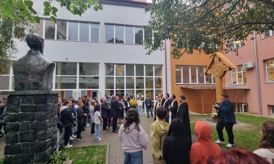 Elevii și profesorii Colegiului Național „George Coșbuc” Cluj-Napoca au participat la un eveniment cu totul special miercuri, 1 octombrie 2025, de sărbătoarea ortodoxă Acoperământul Maicii Domnului. Este vorba de sfințirea troiței din lemn, instalată în curtea mică a instituției de învățământ, lângă bustul patronului spiritual al colegiului, poetul George Coșbuc. Slujba de sfințire a fost oficiată de preoții Cristian Baciu de la Parohia Ortodoxă „Sfânta Treime” Cluj-Napoca, Claudiu Melean de la Parohia Ortodoxă „Sf. Ierarh Alexandru” Cluj-Napoca, Măluțan Ciprian Iulian de la Parohia Filea de Jos și preotul Marciuc Sorin-Niculai de la Parohia „Sf Iustin Martirul și Filosoful” Cluj-Napoca. Alături de preoții clujeni au fost oaspeții veniți din județul Satu-Mare: pr. Păcurar Daniel de la Parohia Ortodoxă Tarna Mare și pr. Dragoș Marius de la Parohia Ortodoxă Halmeu. De asemenea, la evenimentul deosebit a fost prezentă și Claudia Păcurar, directoarea Liceului Tehnologic Tarna Mare, partener de proiecte al colegiului clujean. Întru acest semn vei învinge. După oficierea slujbei religioase, preotul Cristian Baciu de la Parohia Ortodoxă „Sfânta Treime” Cluj-Napoca a spus că slujba de binecuvântare a troiței, care a fost înălțată în curtea interioară a Colegiului Național „George Coșbuc”, are o importanță deosebită deoarece acest semn, această cruce va fi sprijin, ajutor și întărire pentru profesori, dar mai ales pentru elevii acestei școli. Preotul Cristian Baciu a vorbit despre însemnătatea crucii în viața oamenilor: „Nu cinstim materialul din care este făcută această troiță, cinstim jertfa mântuitorului Iisus Hristos. Prin răstignirea Domnului noi am primit viață veșnică și prin semnul crucii lemnul a devenit din instrument de tortură, cum era înainte de răstignirea Mântuitorului, semn de binecuvântare și de sfințire a vieții noastre. De aceea, prin jertfa Mântuitorului pe cruce noi am primit viață veșnică”. Părintele Cristian Baciu a mai spus că sunt multe dovezi în Sfânta Scriptură despre cinstirea crucii și a menționat în acest sens un episod legat de viața împăratului Constantin cel Mare: „Împăratul Constantin cel Mare se afla într-un mare război cu un dușman de al său, Maxeniu. Constantin cel Mare avea un număr mai mic de ostași, iar cealaltă armată era cu mult mai numeroasă. Atunci, în miezul zilei, pe cerul senin, s-a arătat semnul Sf. Cruci cu cuvintele: Întru acest semn vei învinge, consemnează istoricii. Și Constantin cel Mare a primit îndemn de la D-zeu să treacă semnul crucii pe steagurile și uniforma ostașilor. Ca urmare a acestui moment la podul Milvius, unde a avut această luptă, împăratul Constantin a ieșit învingător și a câștigat bătălia respectivă. Dar în acele vremuri creștinii erau persecutați. Nu erau liberi să-și manifeste credința. Ca urmare, în anul 313, prin edictul de la Milano împăratul Constantin a dat dispoziție: creștinii sunt liberi să-și manifeste credința lor. Iată un moment important din istorie care ne arată biruința cu ajutorul sfintei cruci”. A lăsa ceva în urmă. În cuvântul său, preotul Cristian Baciu a mulțumit directorului Colegiului Național „George Coșbuc, prof. dr. Horațiu Popa Bota, pentru hotărârea pe care a luat-o împreună cu consiliul de administrație, corpul profesoral și părinții de a amplasa această troiță în incinta școlii, pentru a fi de folos elevilor și profesorilor. „Este de apreciat acest lucru, în lumea de astăzi, când unii evităm să ne manifestă credința sau avem rețineri din acest punct de vedere. Iată acest gest de curaj prin care a decis amplasarea acestei troițe deosebite realizate din lemn sculptat și care va dăinui multe veacuri”, a spus acesta. Părintele a amintit de faptul că în perioada interbelică, în zona statui Baba Novac, a fost amplasată o troiță în stil românesc și că prin instalarea celei din curtea colegiului s-a realizat o legătură cu trecutul: „Ați făcut o reconstituire, chiar dacă troița este amplasată în vecinătatea acelui spațiu. Ați făcut o legătură cu istoria noastră, cu trecutul. Pe lângă toate proiectele pe care reușiți să le implementați, ați considerat să lăsați ceva în urmă și din punct de vedere sufletesc, al manifestării credinței pe care o aveți”. Dăruită de o familie din Maramureș. La rândul său, directorul Horațiu Popa Bota a afirmat că troița este dăruită de părinții unui fost elev al colegiului, din județul Maramureș, care au dorit ca în acest fel să răsplătească ceea ce a făcut școala pentru copilul lor, în prezent, student la o prestigioasă universitate din oraș. Astfel troița din lemn, sculptată în stil tradițional românesc, a ajuns în curtea colegiului la data de 11 septembrie 2025, iar apoi părinții s-au mobilizat s-o instaleze. Directorul Horațiu Popa Bota a mulțumit preotului Bârsan, din Bârsana, județul Maramureș, care a sculptat-o, familiei care a donat troița, tuturor părinților care s-au implicat în montarea troiței, dar și oaspeților din Satu-Mare care au venit să fie alături într-un moment deosebit. Articol de Tia Sirca.